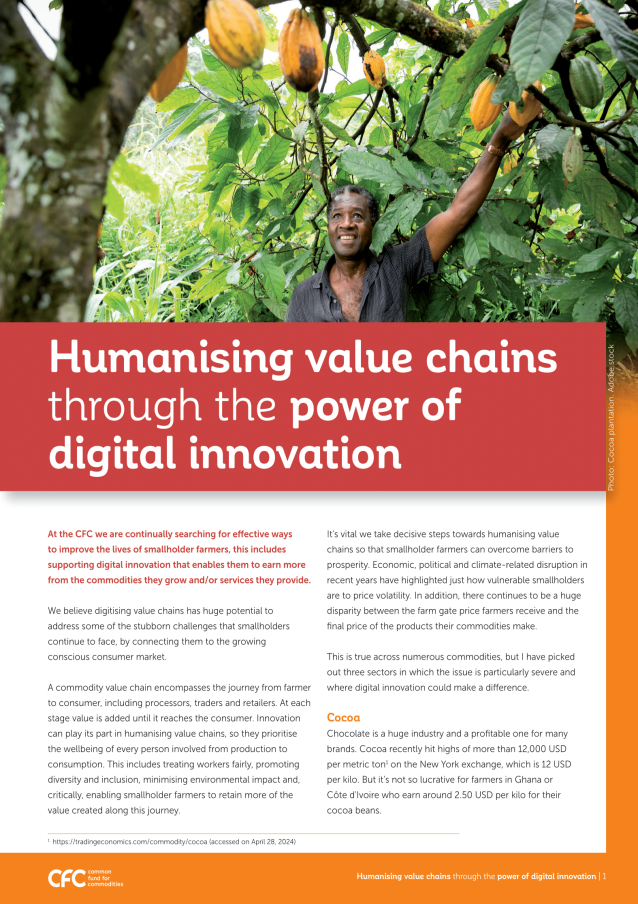In 2024, the Common Fund for Commodities (CFC) faced unprecedented demand, with over 360 project proposals reflecting the aspirations of millions. Constrained by limited resources, we approved 18 projects, investing USD 135.56 million – directly benefiting 196,000 smallholders, supporting 540,000 farmers, and sustaining 11,800 jobs.